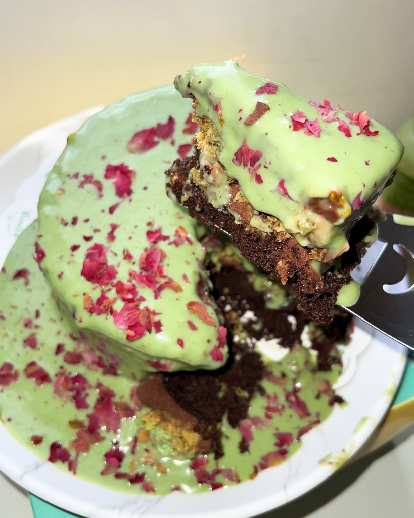 If you’ve been keeping up with dessert trends, you’ve no doubt seen the Pistachio Crunch Cake all over social media. This stunning cake is everything dessert lovers have been waiting for: chocolate sponge, pistachio mousse, a crunchy kataifi pistachio layer, and a luxurious pistachio sauce that you get to drizzle yourself. It’s a decadent, multi-layered cake that combines both richness and texture, making it a must-try for anyone who loves a little crunch with their cake.
