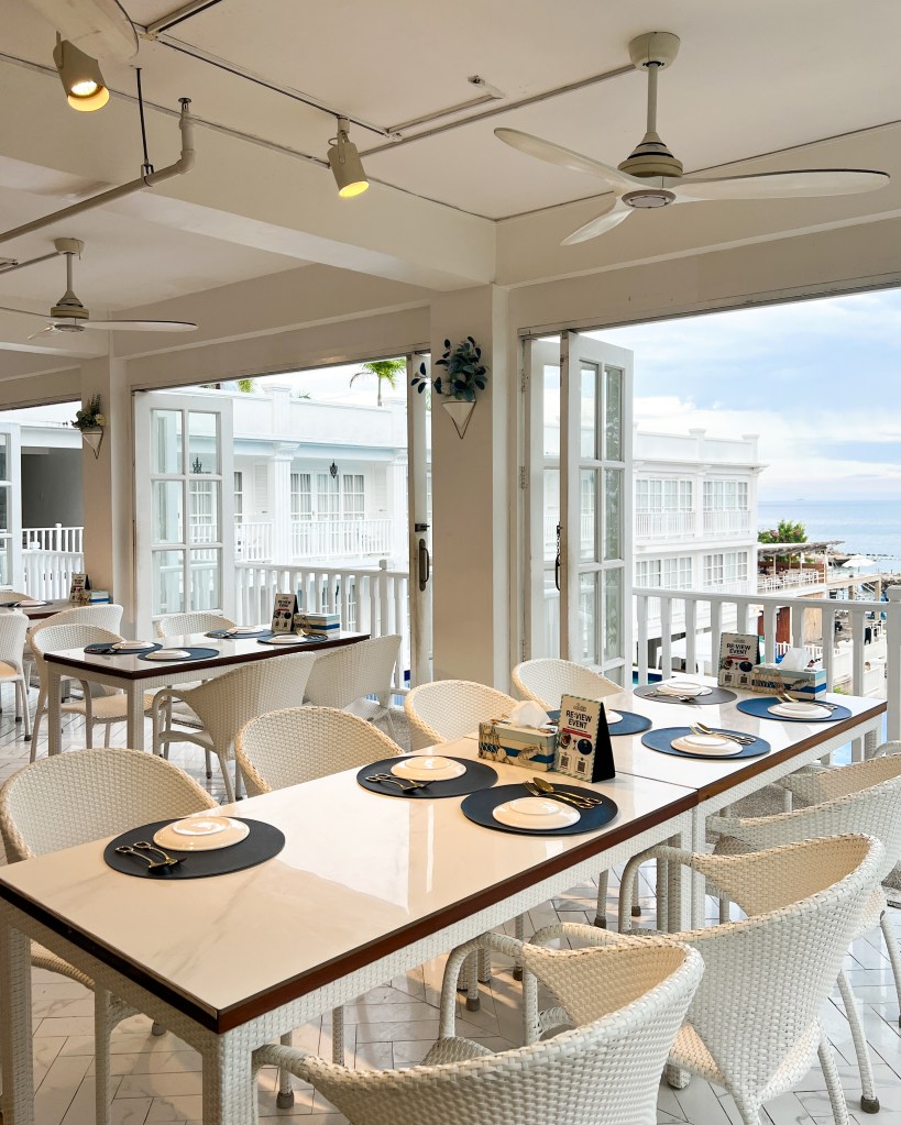 What makes Cebu Cabana stand out isn’t just the food—it’s the whole experience. The restaurant’s bright white seating and spacious setup create a relaxing yet elegant vibe. It’s the kind of place where you can enjoy a delicious meal while watching the waves crash against the shore.