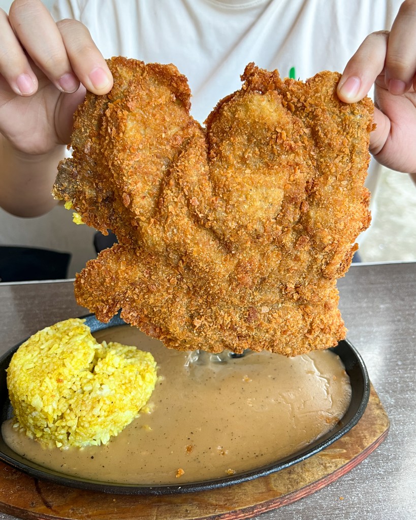The first thing that stood out on the menu was their Breaded Porkchop. It’s enormous—probably the biggest porkchop I’ve had in Cebu so far. Perfectly breaded and crispy on the outside, with a juicy interior that stays tender despite the size. If there’s one item that defines Kalye Sizzlers, this would be it.