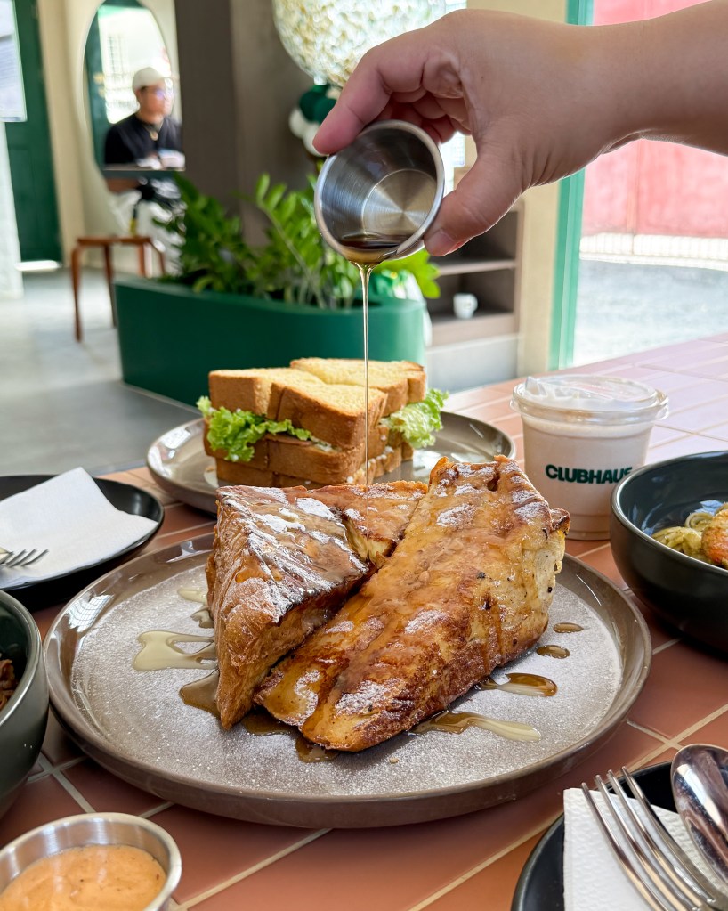 If there’s one dish that sums up Clubhaus’ approach, it’s this one. The sando is generously filled with ham, egg salad, and bacon, layered between thick slices of soft bread. Each bite balances savory, smoky, and creamy textures — satisfying enough to be a meal on its own.
